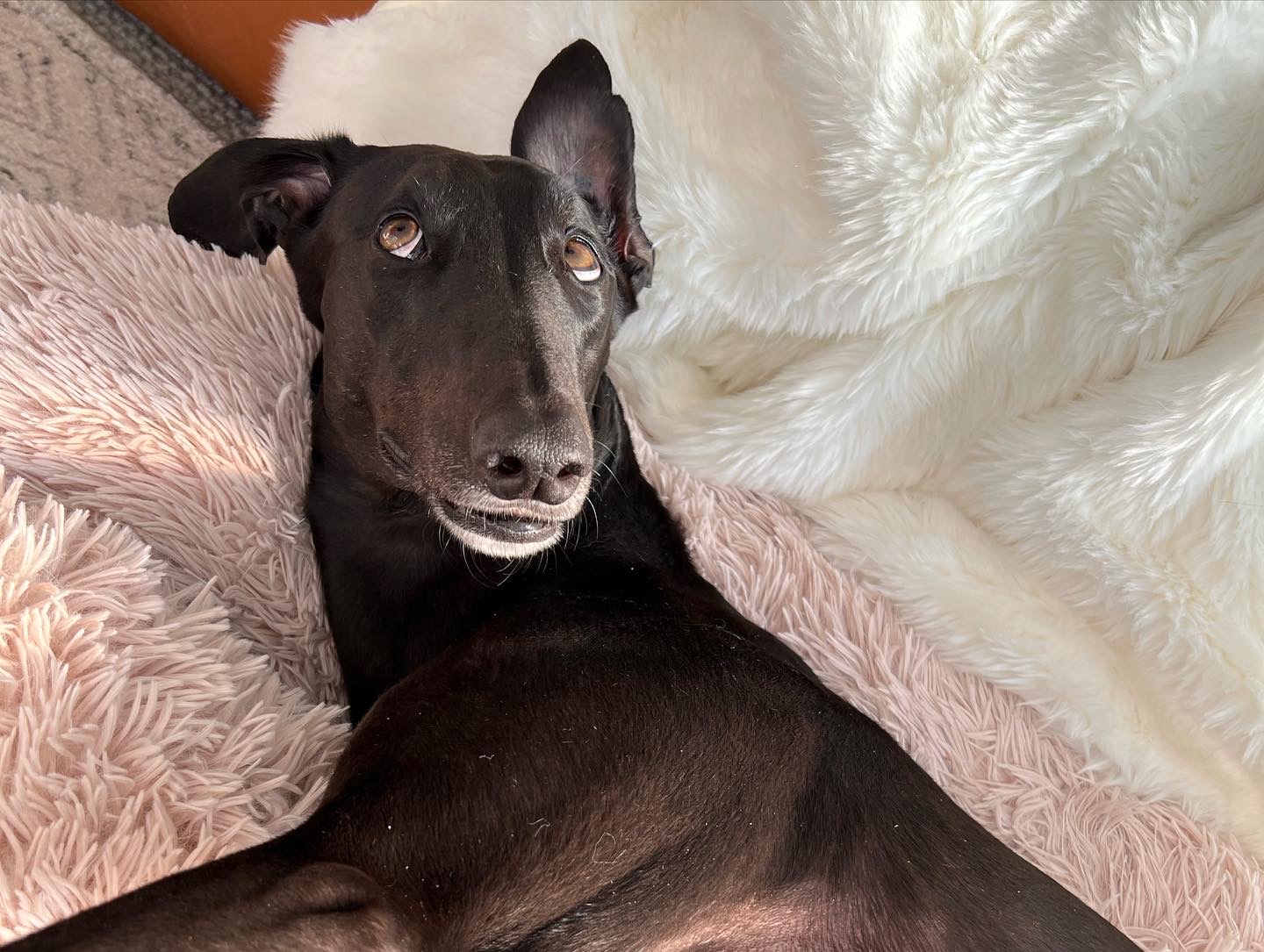 Our greyhounds are mostly straight from the racing industry. Some greyhounds come to us from pounds and shelters, and occasionally some are surrendered as pets. Often, though they have never experienced home life. This includes stairs, sliding doors, and appliances - it's a whole new world and you are their cheery tour guide!